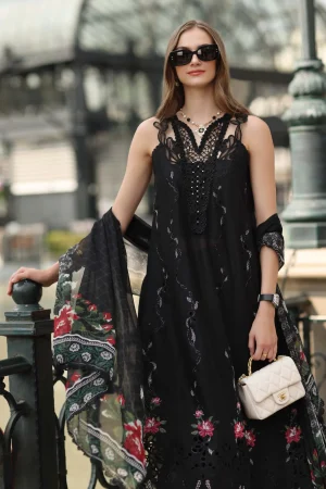 Schiffli embroidered lawn front & side panels